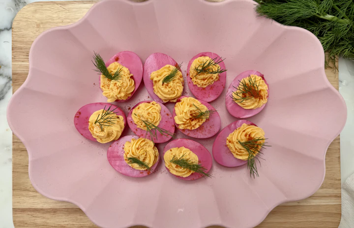 Add a pop of colour to your Easter spread with these vibrant beetroot devilled eggs!